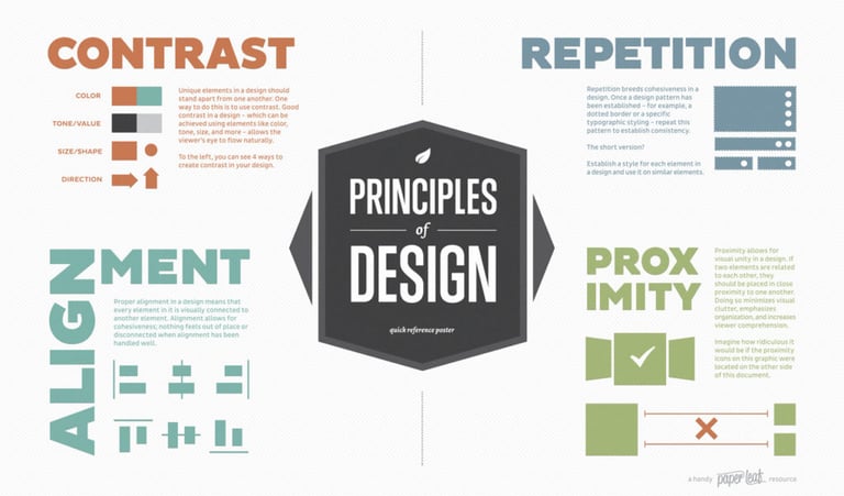 Contrast: Create clear visual differences between elements (e.g., black text on a white background, larger/bolder headings) to emphasize important information and draw the eye.